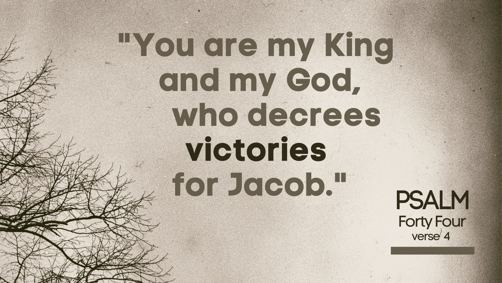 Second-hand information isn’t enough. One has got to say in one’s own ex-perience, “you are my King … who decrees [i.e. commands] victories” (v.4). Note the plural – his help isn’t just a one-off.